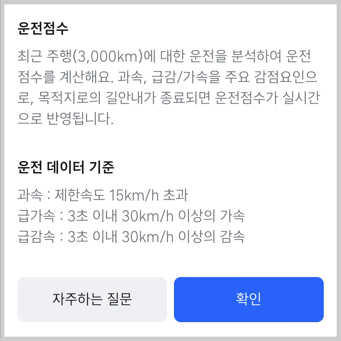 (참고 : TMAP 운전점수 팀이 알려주는 점수 빨리 올리는 꿀팁)