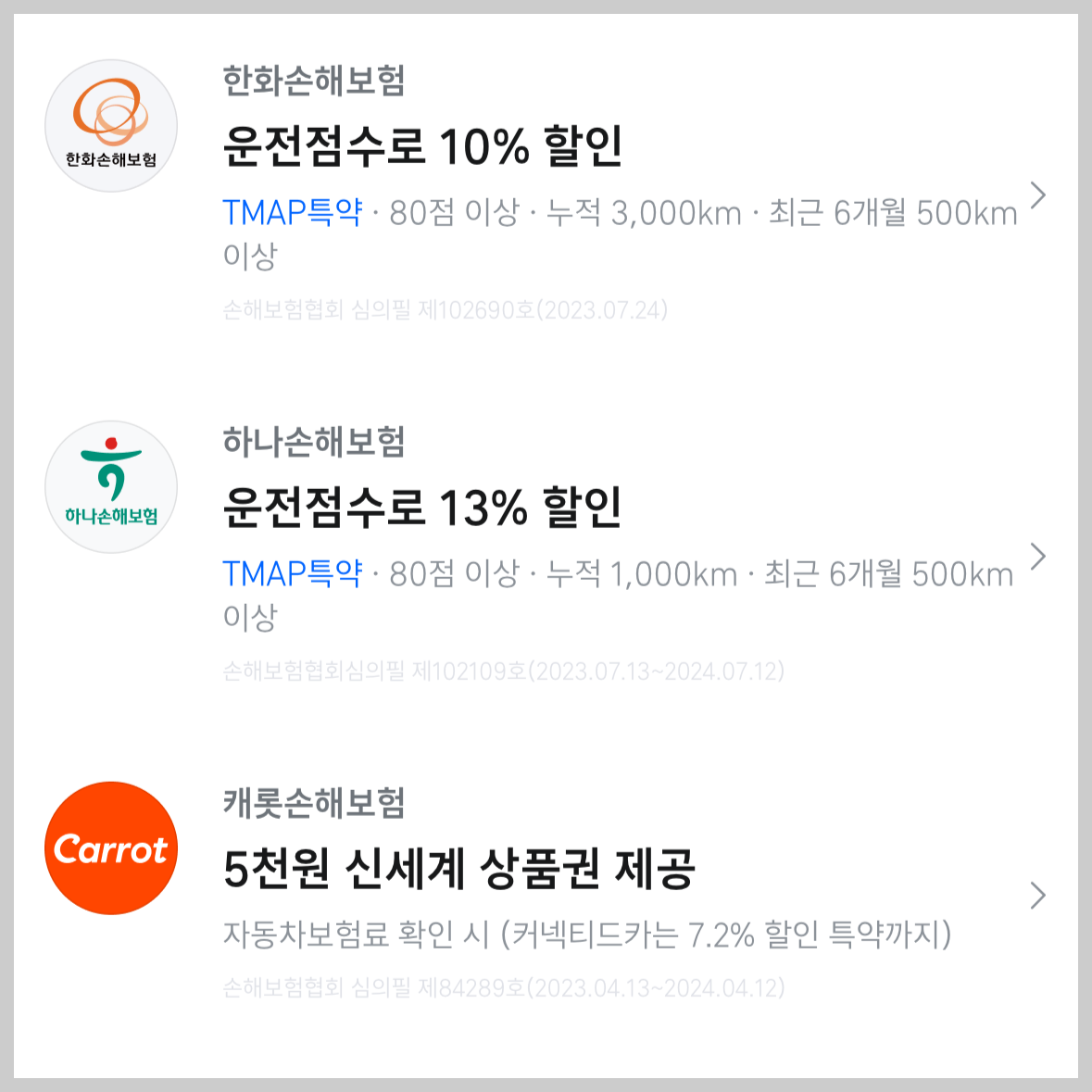 아래와 같이 TMAP 앱 내에서도 보험 혜택에 대한 내용을 확인할 수 있습니다.